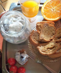 Közben 1 ek. extra szűz olívát kikevertem 1 gerezd zúzott fokhagymával.