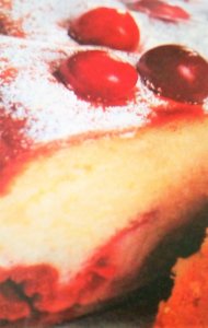 20 dkg tönköly lisztet beleszitáltam a sárga masszába, eldolgoztam, majd kis adagokban forgattam bele a fehérjét. / lazán, semmi keverés/ A cseresznyét enyhén beleforgattam lisztbe, azt is a masszához adtam és kivajazott, kilisztezett formában, közepes hőmérsékleten 30 perc alatt megsütöttem.