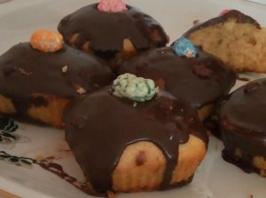A formákból szépen kifordultak, azok nélkül tányérra tettem, nem rácsra, mert egy csepp párizsi krémért is kár volna, ha a rács alá csöpögne.
