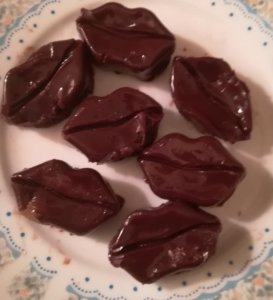 Így készülhet belőle ajándék. A kis félgömb ugyanaz, csak más formában hűtöttem ki és kapott 1 fél mogyorót.