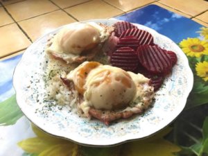 Gyakorlatilag úgy fest, mintha tükörtojás borítaná, tehát Holstein módon készült volna, így meglepetés éri azt, akit kínálunk vele.
